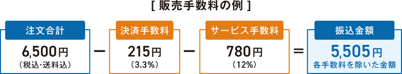 - 決済手数料(3.3%)は、「商品価格+送料+消費税」の3.3%となり、注文毎に発生します。